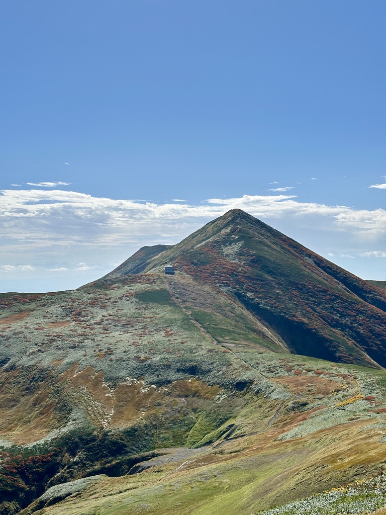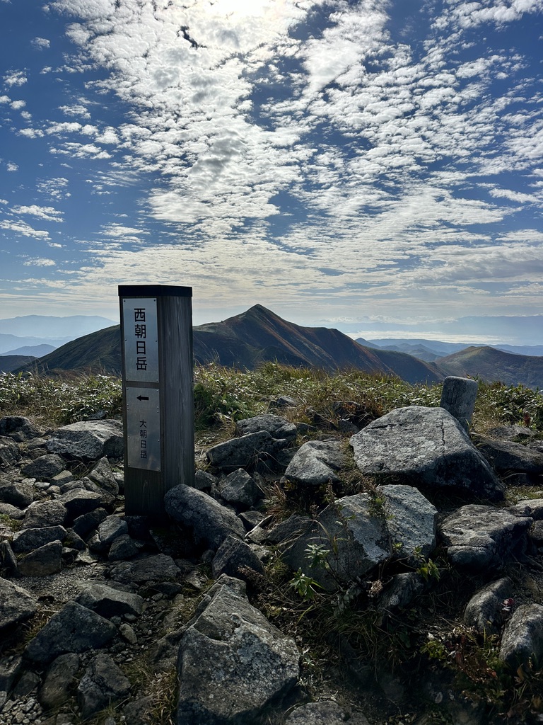 下りの周回ルートではやまがた百名山の小朝日岳にも行きます。