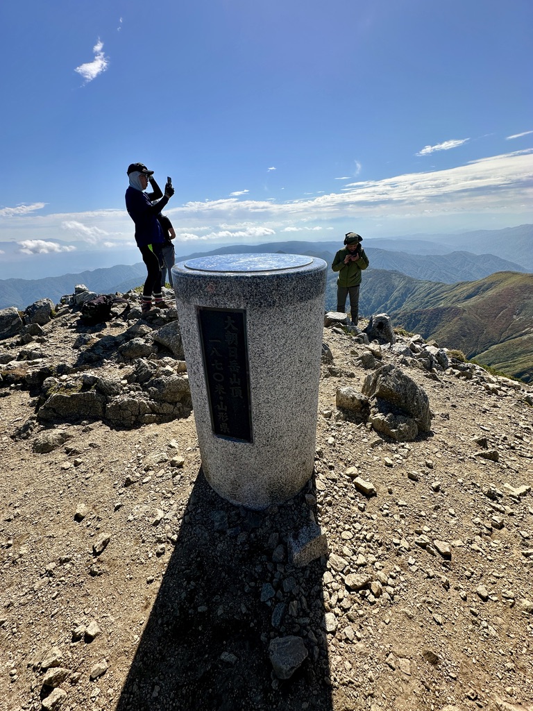 小屋から少し登って大朝日岳に到着。日本百名山!