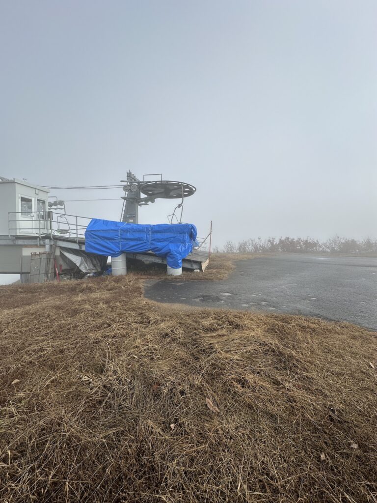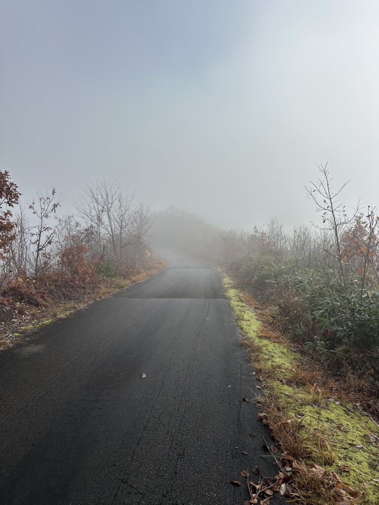 やまびこ荘の駐車場のところに苗場山へ通じる道があります。
