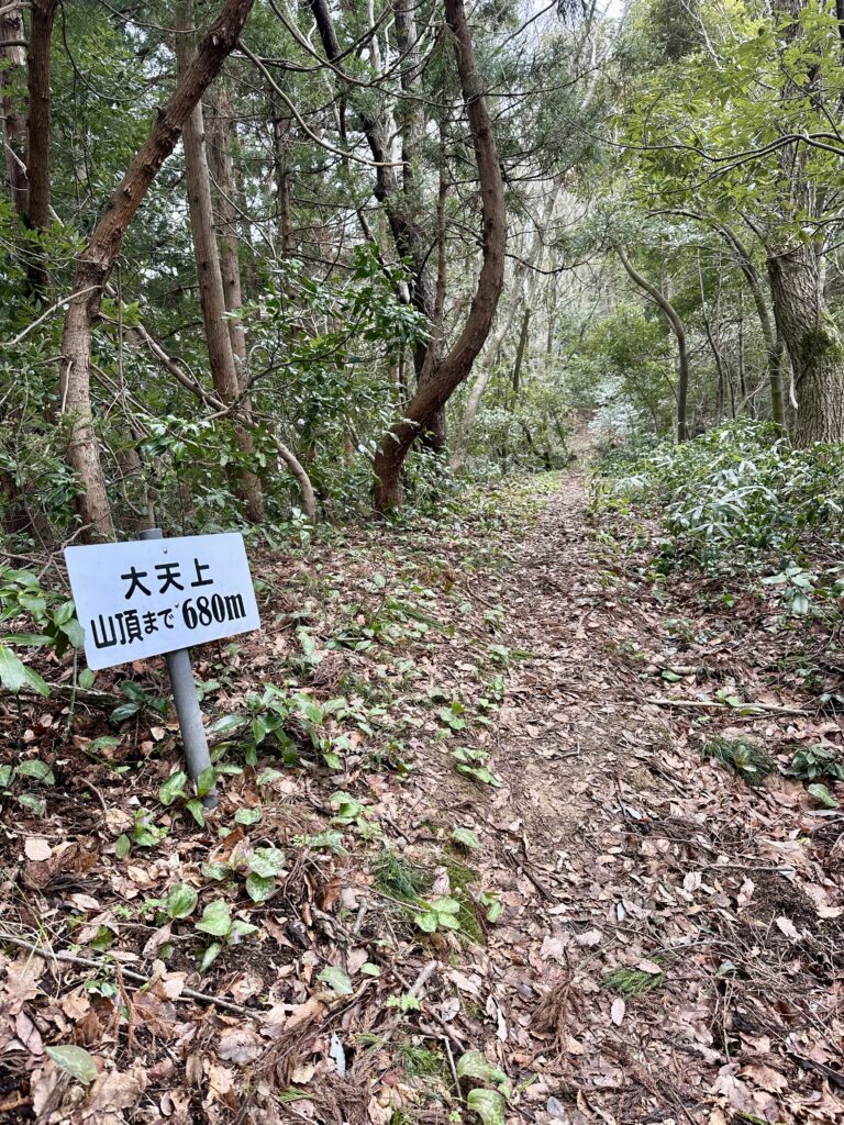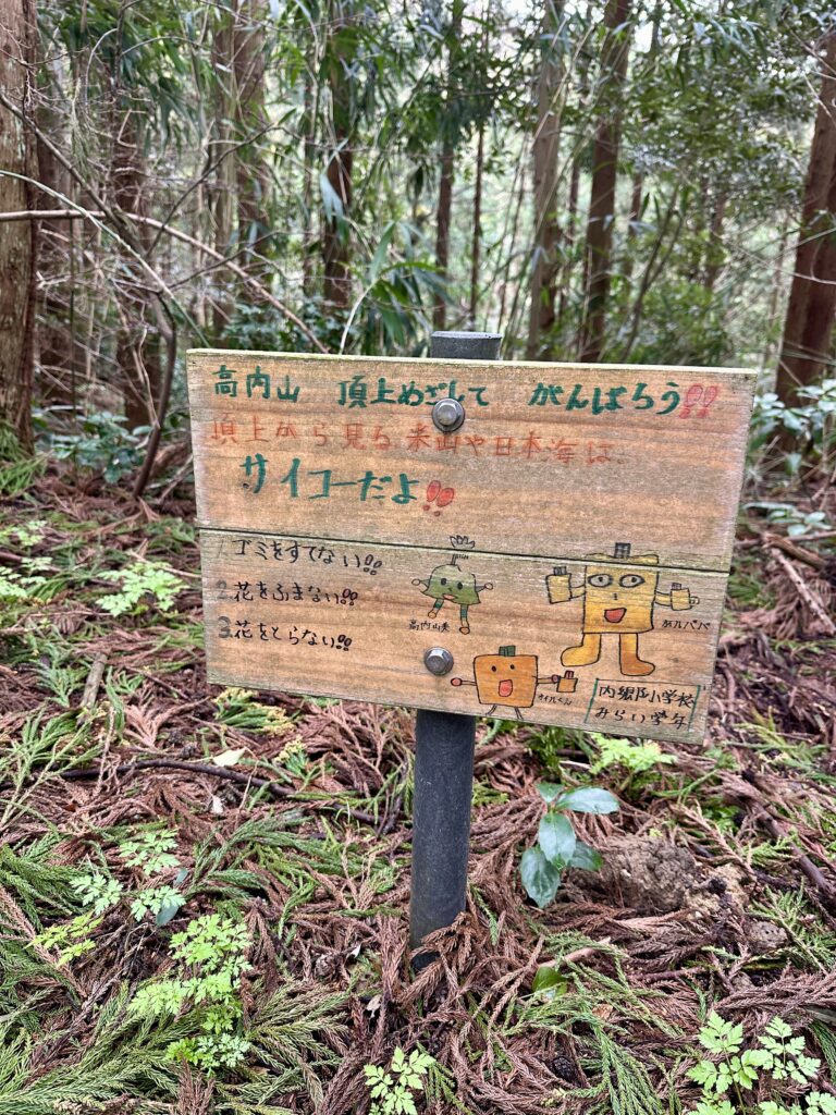 山頂看板。山頂だけ少し眺望がある。