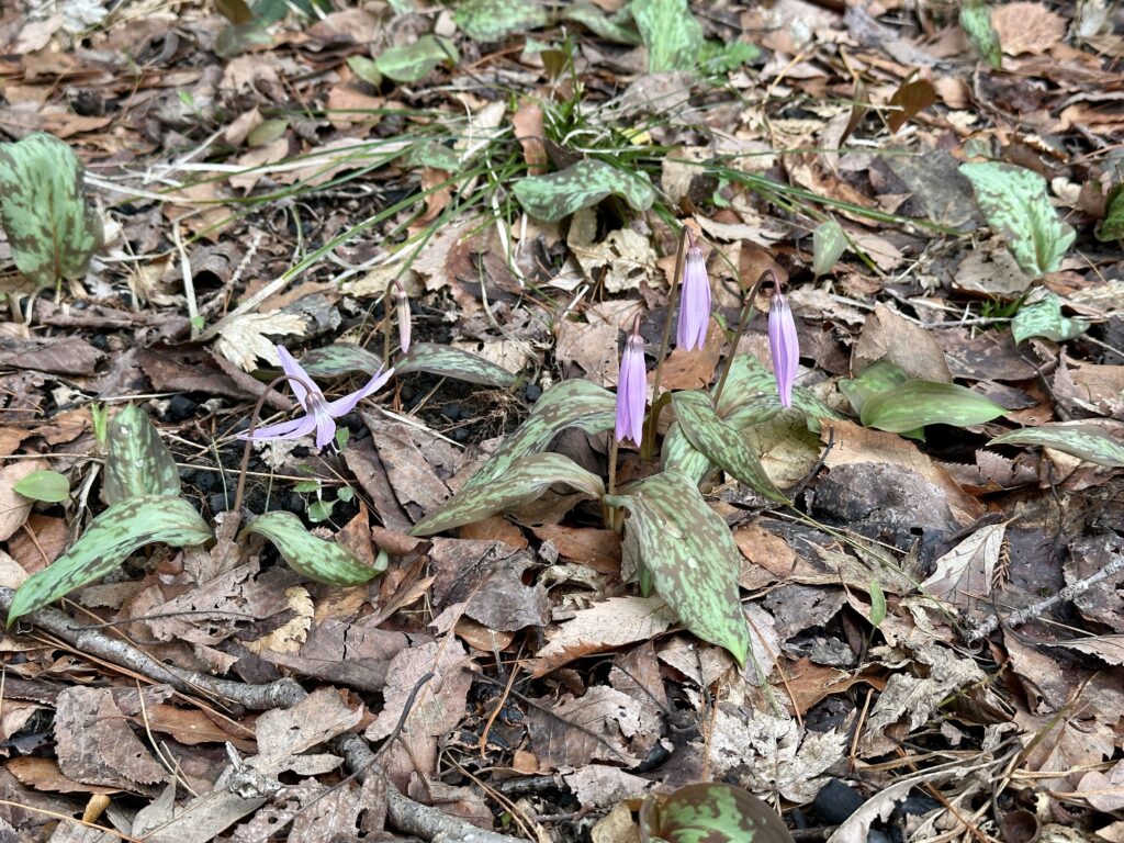 カタクリがちらほら。3月下旬でしたが7割程度咲いている感じでした。