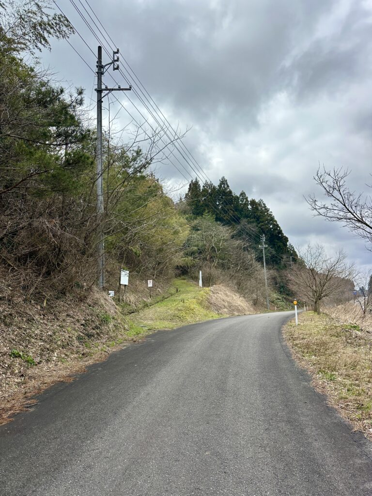 この道路のカーブのところに数台駐車できるスペースがあったのでそこに車を停めさせていただきました。