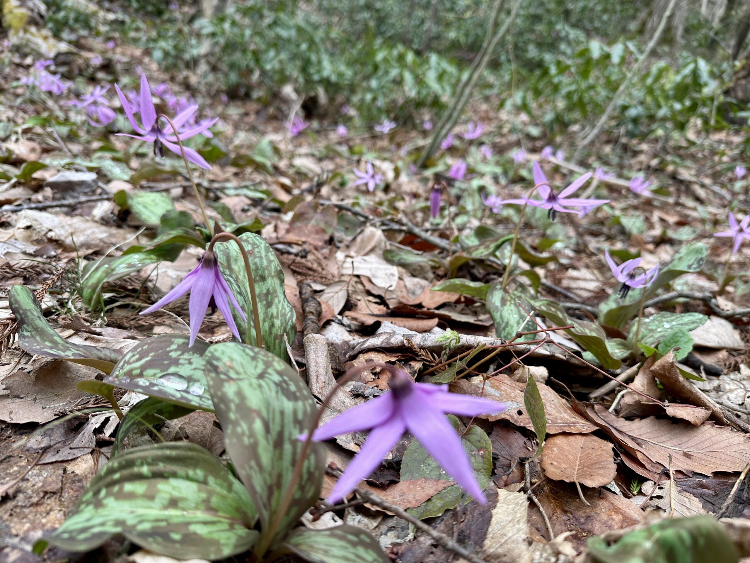 カタクリがちらほら。3月下旬でしたが7割程度咲いている感じでした。